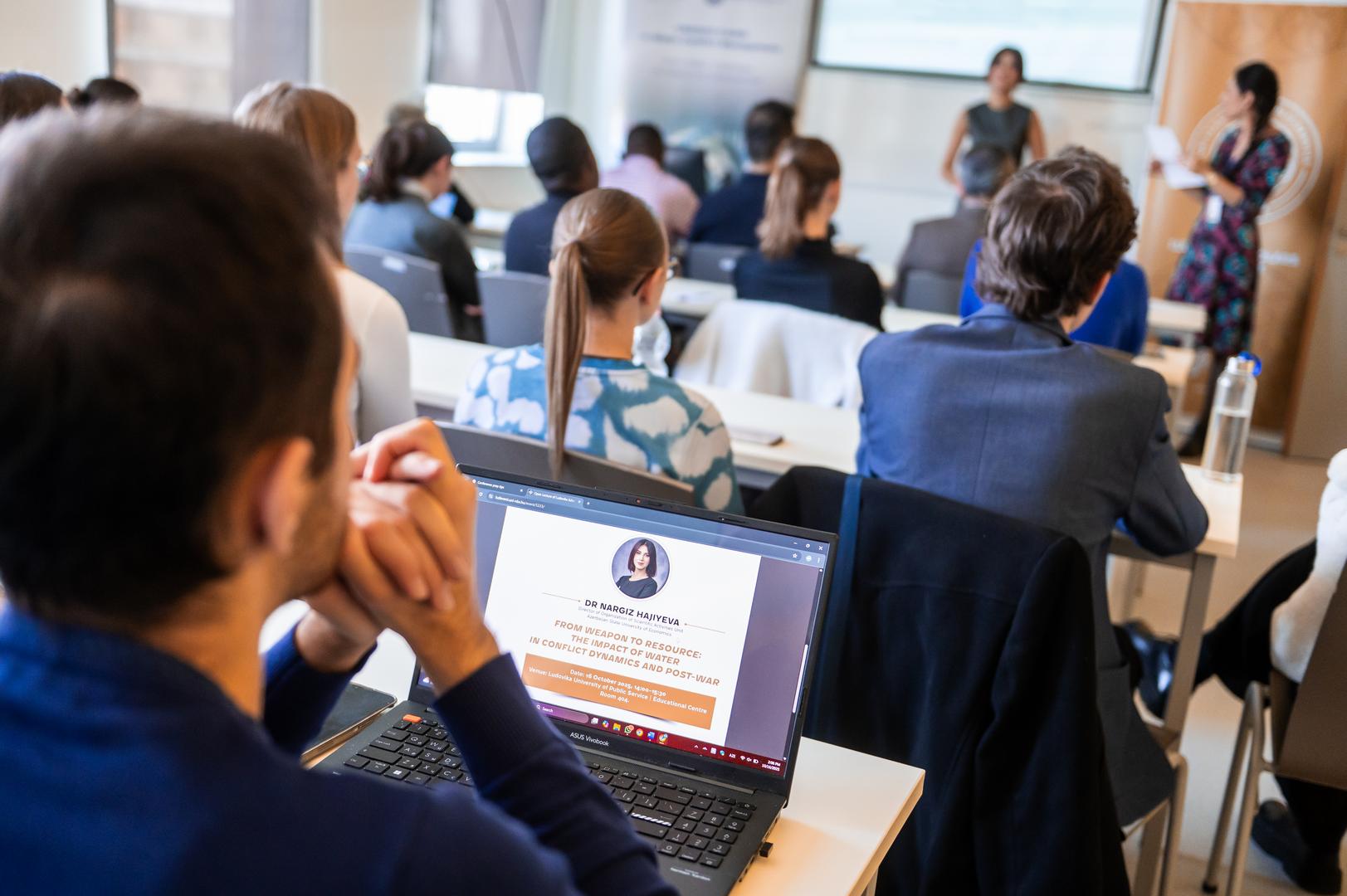 Dr. Hajiyeva also presented case studies on water-related conflicts in the Caucasus and Central Asia, and discussed the water-related consequences of the war in Ukraine, stressing that the destruction of water infrastructure leads to both humanitarian and ecological crises. Her presentation highlighted that water as a resource is becoming an integral part of strategic security, making international legal and scientific cooperation essential for sustainable solutions.