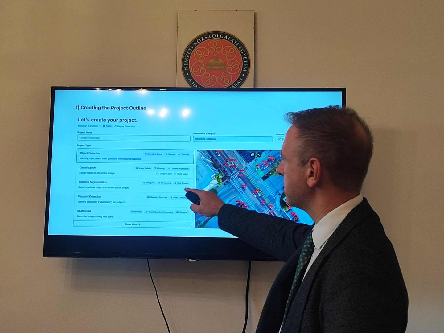 The guest speaker presented a public lecture on the subject of "Characteristics and lessons learned from earthquakes in Turkey" to a large number of disaster management students and foreign students studying at the Institute, as well as visiting lecturers who had come to the University. This was followed by a workshop entitled "Structural collapse detection with drone application and deep learning" in the meeting room of the Institute of Disaster Management with the lecturers of the Institute, interested students and foreign visiting lecturers.